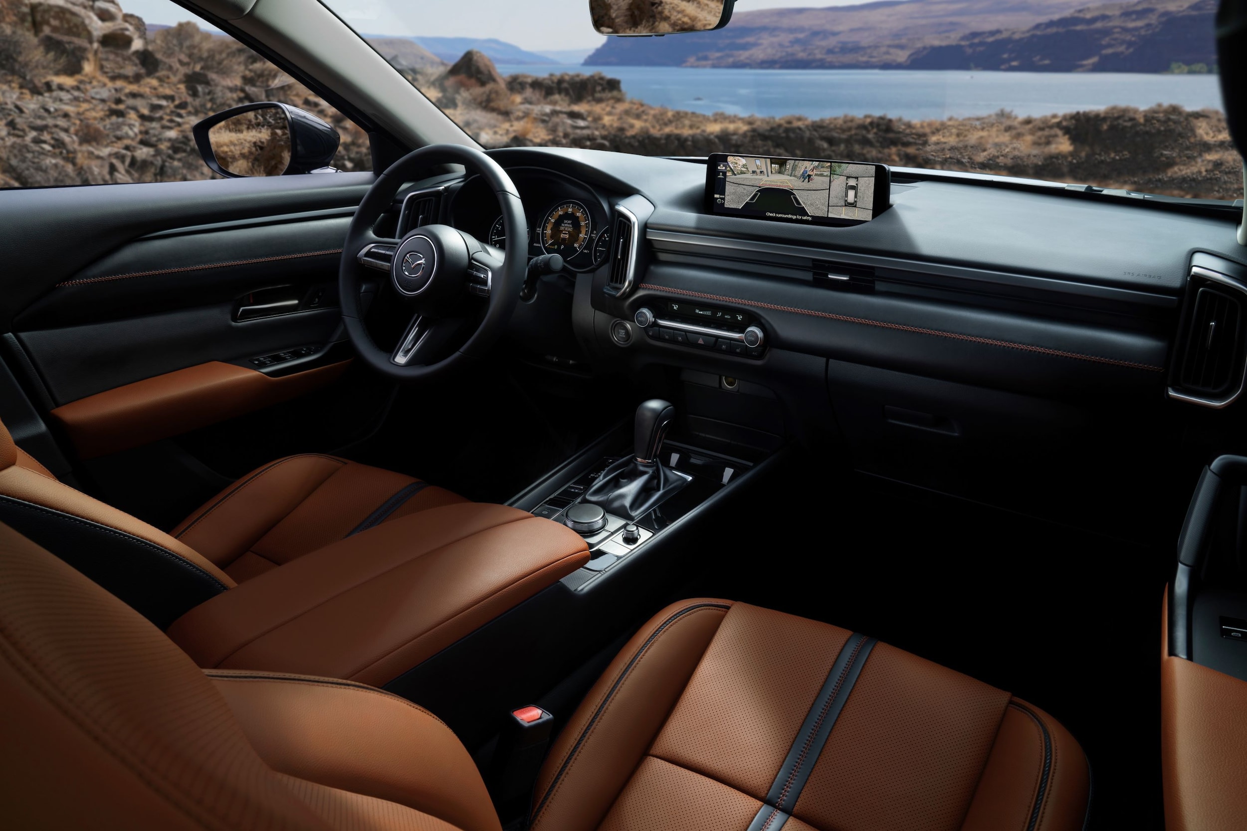 The Mazda CX-50 Hybrid is packed with advanced technology and convenience features to enhance your driving experience. Available features include a head-up display, heated and ventilated front seats, a power liftgate, and a 360-degree view monitor for effortless parking and maneuvering. The Mazda CX-50 Hybrid also offers a wireless charging pad, keeping your devices powered up without the clutter of cords. Stay connected and entertained with the Mazda Connect infotainment system, offering seamless smartphone integration, available built-in navigation, and access to your favorite apps and music.