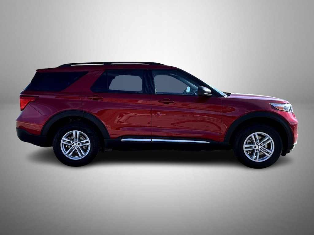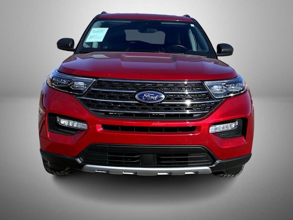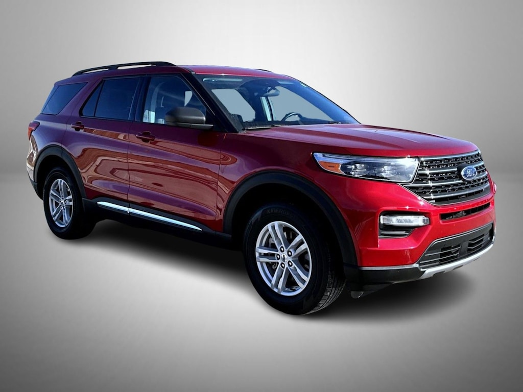 Rapid Red Metallic Tinted Clearcoat 2023 Ford Explorer XLT 4WD 10-Speed Automatic 4 cylinder 4WD, 3.58 Non-Limited-Slip Rear Axle Ratio, 3rd row seats: bench, 4-Wheel Disc Brakes, 4G LTE Wi-Fi Hotspot Credit, 6 Speakers, ABS brakes, Acoustic-Laminated Front Side Windows, Air Conditioning, Alloy wheels, AM/FM radio: SiriusXM, AM/FM Stereo, Auto High-beam Headlights, Automatic temperature control, Brake assist, Bumpers: body-color, Compass, Delay-off headlights, Driver door bin, Driver vanity mirror, Dual front impact airbags, Dual front side impact airbags, Electronic Stability Control, Emergency communication system: SYNC 3 911 Assist, Equipment Group 202A, Exterior Parking Camera Rear, FordPass Connect, Four wheel independent suspension, Front anti-roll bar, Front Bucket Seats, Front Center Armrest, Front dual zone A/C, Front reading lights, Fully automatic headlights, Heated ActiveX Captain's Chairs, Heated door mirrors, Heated front seats, Heated Steering Wheel, Heated Unique Cloth Captain's Chairs, Illuminated entry, Knee airbag, Leather steering wheel, LED Fog Lamps, Low tire pressure warning, Occupant sensing airbag, Outside temperature display, Overhead airbag, Overhead console, Panic alarm, Passenger door bin, Passenger vanity mirror, Power door mirrors, Power driver seat, Power Liftgate, Power passenger seat, Power steering, Power windows, Rear air conditioning, Rear anti-roll bar, Rear Auxiliary Controls Credit, Rear reading lights, Rear window defroster, Rear window wiper, Remote keyless entry, Remote Start System, Roof rack: rails only, SecuriCode Keyless Entry Keypad, Security system, Speed control, Speed-sensing steering, Speed-Sensitive Wipers, Split folding rear seat, Spoiler, Steering wheel mounted audio controls, SYNC 3 Communications & Entertainment System, SYNC 3/Apple CarPlay/Android Auto, Tachometer, Telescoping steering wheel, Tilt steering wheel, Traction control, Trip computer, Variably intermittent wipers, Wheels: 18" 5-Spoke Silver-Painted Aluminum, 4WD.