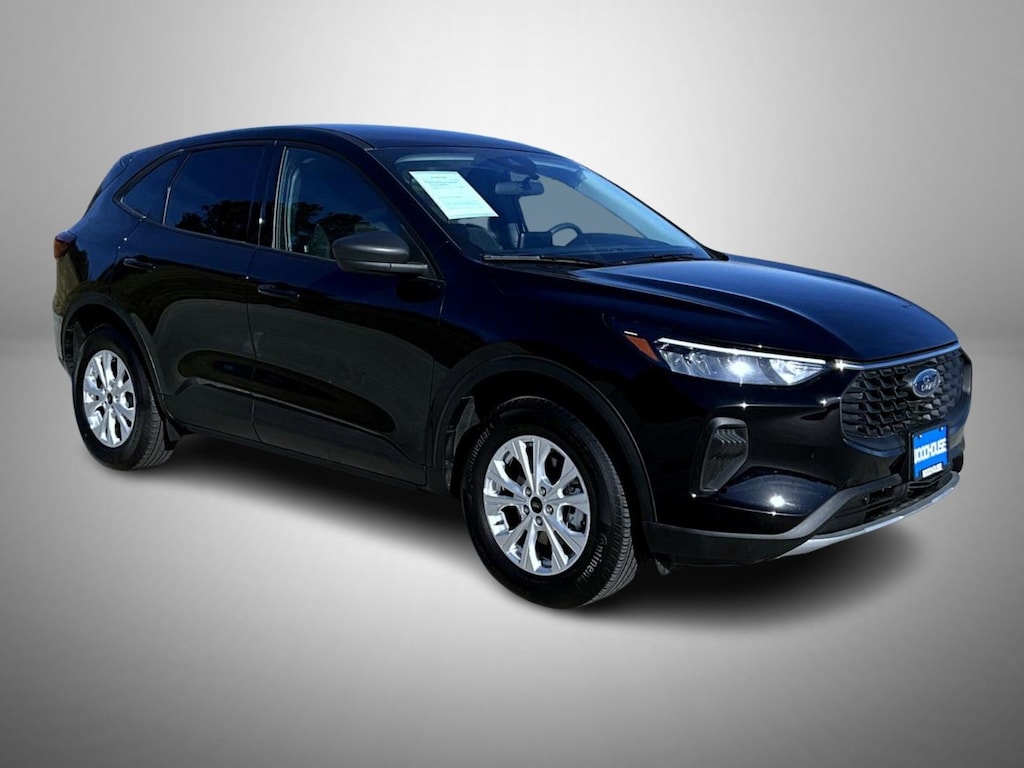 Black Metallic 2025 Ford Escape Active AWD 8-Speed Automatic 3 cylinder AWD, 3.81 Axle Ratio, 4-Wheel Disc Brakes, 6 Speakers, ABS brakes, Air Conditioning, Alloy wheels, AM/FM radio: SiriusXM, AM/FM Stereo, Auto High-beam Headlights, Automatic temperature control, Brake assist, Bumpers: body-color, Compass, Delay-off headlights, Driver door bin, Driver vanity mirror, Dual front impact airbags, Dual front side impact airbags, Electronic Stability Control, Emergency communication system: SYNC 4 911 Assist, Equipment Group 200A, FordPass Connect, Four wheel independent suspension, Front anti-roll bar, Front Bucket Seats, Front Center Armrest, Front dual zone A/C, Front License Plate Bracket, Front reading lights, Fully automatic headlights, Illuminated entry, Knee airbag, Low tire pressure warning, Occupant sensing airbag, Outside temperature display, Overhead airbag, Overhead console, Panic alarm, Passenger door bin, Passenger vanity mirror, Power door mirrors, Power steering, Power windows, Radio data system, Rear anti-roll bar, Rear reading lights, Rear seat center armrest, Rear window defroster, Rear window wiper, Remote keyless entry, Speed control, Speed-sensing steering, Speed-Sensitive Wipers, Split folding rear seat, Spoiler, Steering wheel mounted audio controls, SYNC 4, Tachometer, Telescoping steering wheel, Tilt steering wheel, Traction control, Trip computer, Unique Cloth Front Bucket Seats, Variably intermittent wipers, Wheels: 17" Shadow Silver-Painted Aluminum, AWD.