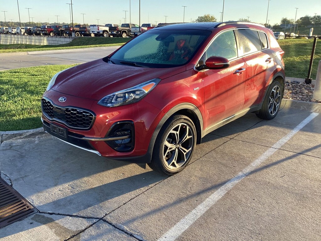 Hyper Red 2020 Kia Sportage SX AWD 6-Speed Automatic Electronic with Overdrive 2.0L I4 DGI Turbocharged AWD, 19" Alloy Wheels, 4-Wheel Disc Brakes, 8 Speakers, ABS brakes, Air Conditioning, Alloy wheels, AM/FM radio: SiriusXM, Apple CarPlay & Android Auto, Auto High-beam Headlights, Auto-dimming Rear-View mirror, Automatic temperature control, Axle Ratio: TBD, Brake assist, Bumpers: body-color, Cargo Mat, Carpet Floor Mats, Compass, Delay-off headlights, Driver door bin, Driver vanity mirror, Dual front impact airbags, Dual front side impact airbags, Electronic Stability Control, Emergency communication system: UVO link, Exterior Parking Camera Rear, Four wheel independent suspension, Front anti-roll bar, Front Bucket Seats, Front Center Armrest, Front dual zone A/C, Front fog lights, Front reading lights, Fully automatic headlights, Garage door transmitter: HomeLink, Heated & Ventilated Front Bucket Seats, Heated door mirrors, Heated front seats, Heated steering wheel, Illuminated entry, Leather Seat Trim, Leather Shift Knob, Leather steering wheel, Low tire pressure warning, Mud Guards, Navigation System, Occupant sensing airbag, Outside temperature display, Overhead airbag, Overhead console, Panic alarm, Passenger door bin, Passenger vanity mirror, Power door mirrors, Power driver seat, Power Liftgate, Power moonroof, Power passenger seat, Power steering, Power windows, Radio: AM/FM/MP3 Premium Audio System, Rear anti-roll bar, Rear seat center armrest, Rear window defroster, Rear window wiper, Remote keyless entry, Roof rack: rails only, Security system, Speed control, Speed-sensing steering, Split folding rear seat, Spoiler, Sport steering wheel, Steering wheel mounted audio controls, Tachometer, Telescoping steering wheel, Tilt steering wheel, Traction control, Trip computer, Turn signal indicator mirrors, Variably intermittent wipers, Ventilated front seats, AWD.