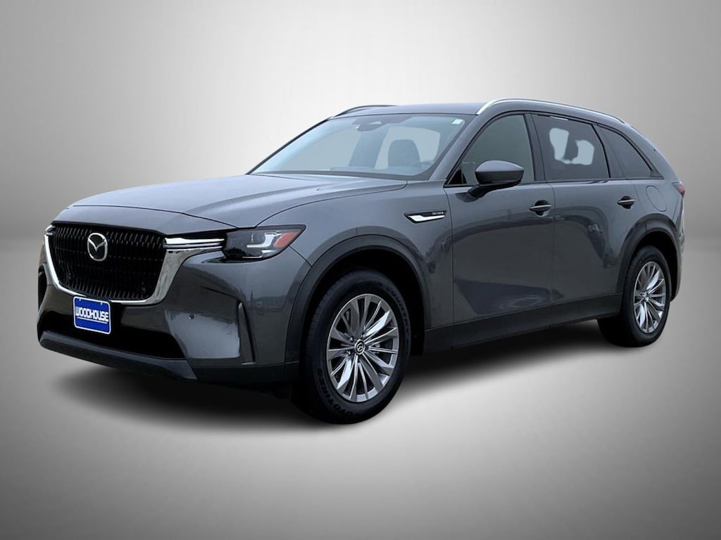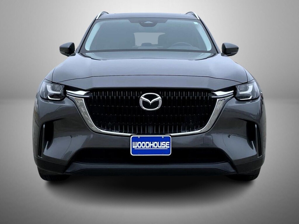 Certified. Machine Gray Metallic 2025 Mazda CX-90 3.3 Turbo Preferred AWD 8-Speed Automatic 3.3L 6 cylinder Mazda Certified Pre-Owned Certified, 2nd-Row Captain's Chairs, 3rd row seats: bench, 4-Wheel Disc Brakes, 8 Speakers, ABS brakes, Air Conditioning, Alloy wheels, AM/FM radio, Auto High-beam Headlights, Automatic temperature control, Brake assist, Bumpers: body-color, Compass, Delay-off headlights, Driver door bin, Driver vanity mirror, Dual front impact airbags, Dual front side impact airbags, E911 Automatic Emergency Notification, Electronic Stability Control, Emergency communication system: MAZDA CONNECT, Exterior Parking Camera Rear, Four wheel independent suspension, Front anti-roll bar, Front Bucket Seats, Front Center Armrest w/Storage, Front dual zone A/C, Front reading lights, Fully automatic headlights, Heated door mirrors, Heated Front Bucket Seats, Heated front seats, Illuminated entry, Infotainment System Voice Command, Knee airbag, Leather Seat Trim, Leather Shift Knob, Leather steering wheel, Low tire pressure warning, Machine Gray Metallic Paint Charge, Mazda Connected Services, Occupant sensing airbag, Outside temperature display, Overhead airbag, Overhead console, Pandora Internet Radio Integration, Panic alarm, Passenger door bin, Passenger vanity mirror, Power door mirrors, Power driver seat, Power Liftgate, Power moonroof, Power passenger seat, Power steering, Power windows, Radio Broadcast Data System Program Information, Radio data system, Radio: AM/FM w/HD/8-Speaker Sound System, Rain sensing wipers, Rear air conditioning, Rear anti-roll bar, Rear reading lights, Rear seat center armrest, Rear window defroster, Rear window wiper, Remote keyless entry, SMS Text Msg Audio Delivery & Reply, Speed control, Speed-sensing steering, Split folding rear seat, Spoiler, Steering wheel mounted audio controls, Tachometer, Telescoping steering wheel, Tilt steering wheel, Traction control, Trip computer, Turn signal indicator mirrors, Variably intermittent wipers, Wheels: 19" x 8.5J Aluminum Alloy.