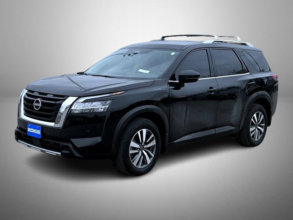 Super Black 2024 Nissan Pathfinder SL 4WD 9-Speed Automatic 3.5L 6 cylinder 4WD, 3rd row seats: bench, 4-Wheel Disc Brakes, 6 Speakers, ABS brakes, Air Conditioning, Alloy wheels, AM/FM radio: SiriusXM, Auto High-beam Headlights, Auto-dimming Rear-View mirror, Automatic temperature control, Axle Ratio: 4.334, Bench Seat Carpeted Floor Mats (Set of 4), Black Splash Guards (Set of 4), Brake assist, Bumpers: body-color, Cross Bars, Delay-off headlights, Driver door bin, Driver vanity mirror, Dual front impact airbags, Dual front side impact airbags, Electronic Stability Control, Emergency communication system, Exterior Parking Camera Rear, Four wheel independent suspension, Front anti-roll bar, Front Bucket Seats, Front Center Armrest, Front dual zone A/C, Front reading lights, Fully automatic headlights, Garage door transmitter: HomeLink, Heated door mirrors, Heated Front Bucket Seats, Heated front seats, Heated steering wheel, Illuminated entry, Knee airbag, Leather steering wheel, Leather-Appointed Seating Surfaces, Low tire pressure warning, Navigation system: NissanConnect with Navigation and Services, Nissan USB Charging Cable Set, NissanConnect featuring Apple CarPlay and Android Auto, NissanConnect w/Navigation & Services, Occupant sensing airbag, Outside temperature display, Overhead airbag, Overhead console, Panic alarm, Passenger door bin, Passenger vanity mirror, Power door mirrors, Power driver seat, Power Liftgate, Power passenger seat, Power steering, Power windows, Radio data system, Radio: AM/FM Audio System, Rear air conditioning, Rear anti-roll bar, Rear reading lights, Rear seat center armrest, Rear side impact airbag, Rear window defroster, Rear window wiper, Reclining 3rd row seat, Remote keyless entry, Security system, Speed control, Speed-sensing steering, Split folding rear seat, Spoiler, Steering wheel mounted audio controls, Tachometer, Telescoping steering wheel, Tilt steering wheel, Traction control, Trip computer, Turn signal indicator mirrors, Variably intermittent wipers, Wheels: 18" x 8J Machined Alloy, 4WD.